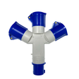 Caravan / motorhome and camping mains site 3 way splitter to suit camping and caravan site electric hookup points. Durable and easy to use. Has 1 x 3 pin (male) earthed plug on one end and then 3 x 3 pin (female) earthed sockets with weather covers on the other.